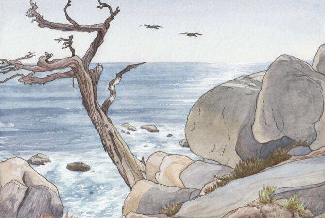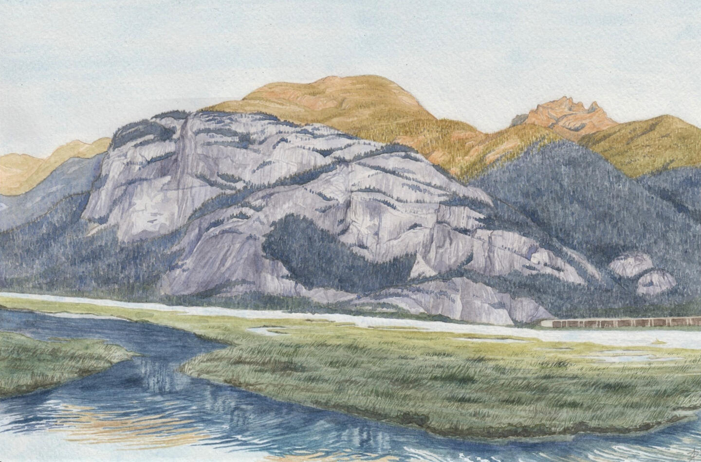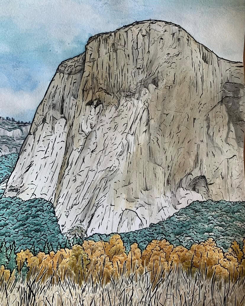 Ashley is a self taught plein air watercolor painter based in Bishop, CA. Her art has been from the Capitol Building in DC to the heart ledges of El Capitan. She is most drawn to rock features most brought to life by the sharp edge of a pen. Originally from Virginia, she travels America in search of interesting shadows and the gleam of sunrise.ARTIST STATEMENT:
